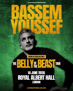 Following sold-out global runs and continued international acclaim, comedian and satirist Bassem Youssef returns to the UK this summer with his new stand-up show The Belly of the Beast, taking place at London’s iconic Royal Albert Hall on Sunday 14 June 2026.